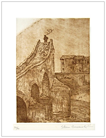 BENVENUTO BENVENUTI Livorno 1881 – Antignano 1959 Senza titolo Acquaforte a 1 colore es.30/60. Firma del figlio Ettore Benvenuti in b. a d. (69,5 x 49,7 foglio – 36,5 x 25 inc.) L’opera fa parte della cartella “Benvenuto Benvenuti 10 acqueforti” Editore Fondazione Cassa di Risparmi di Livorno, dicembre 2001. Tiratura: 60 es. num. arabi + X es. num. romani + 3 es. P.d.S. eseguita nei laboratori della Scuola Internazionale di Arte Grafica Il Bisonte, Firenze, stampata con torchi a stella dai torcolieri Vincenzo Burlizzi e Manuel Ortega su carta a mano della Cartiera Magnani di Pescia. B.A.: 50