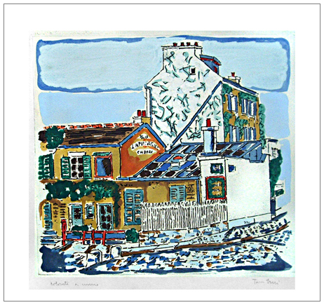 ORFEO TAMBURI Jesi 1910 – Parigi (Francia) 1994 Senza titolo Incisione colorata a mano. Firma + timbro a seco “E/C” in b. a d. (50 x 70 foglio – 31 x 36 inc.) B.A.: 100