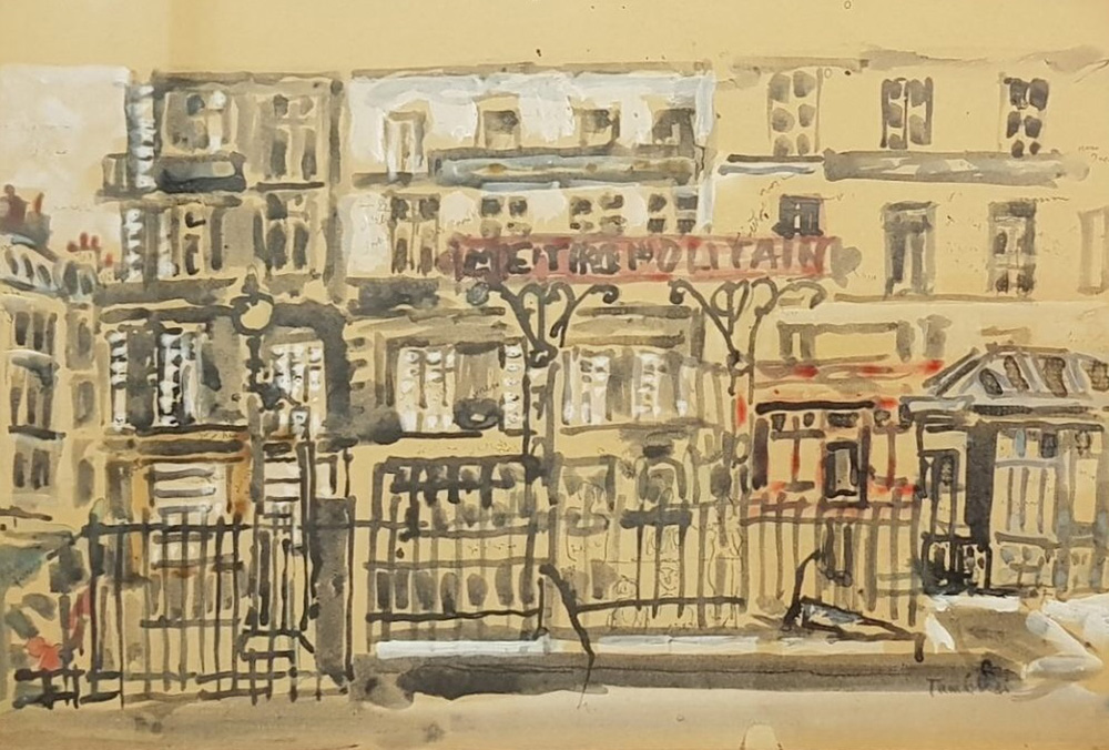 Orfeo Tamburi METROPOLITANA tempera su carta intelata 35x24 1973