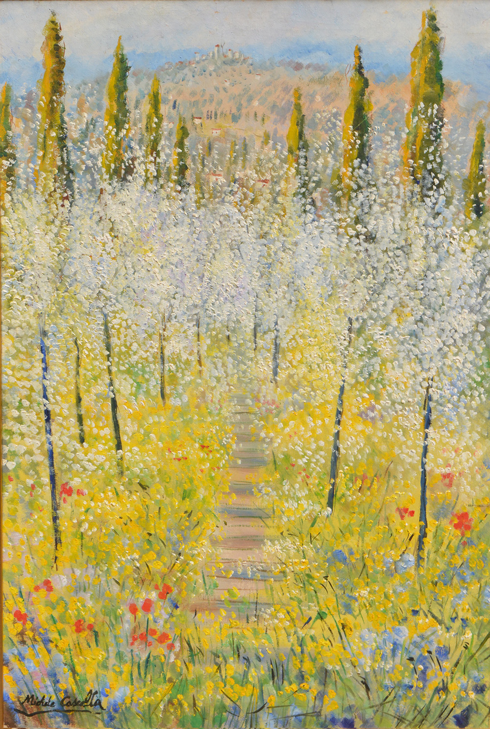 Michele Cascella colline di Portofino olio su tela 91x61 1972 autentica dell'artista su foto