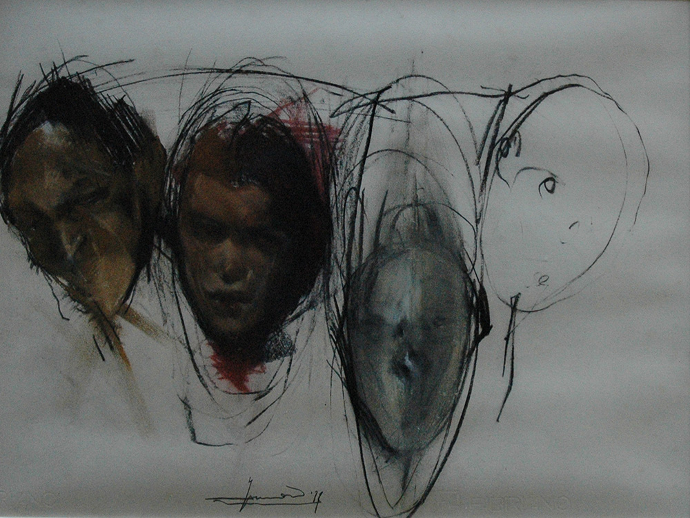 Nicola Samorì Teste 48x34 99 olio e carboncino su carta