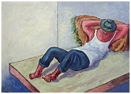 ANGELO SIRIO PELLEGRINI Livorno 1908 – Livorno 1997 Barrocciaio che dorme Olio su tela 50 x 70. Firma in b. a s.; sul verso titolo e firma. B.A.: 150