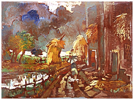 RAFFAELE DE ROSA Podenzana 1940 Senza titolo Olio su faesite 35 x 50. Sigla...