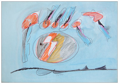 SERGIO DANGELO Milano 1932 Minaccia 1965 Tec. mista su tela cartonata 35 x 50. Firma e data in b. al c., titolo in b. a s.; sul verso titolo, data firme, tecnica e misure. B.A.: 300