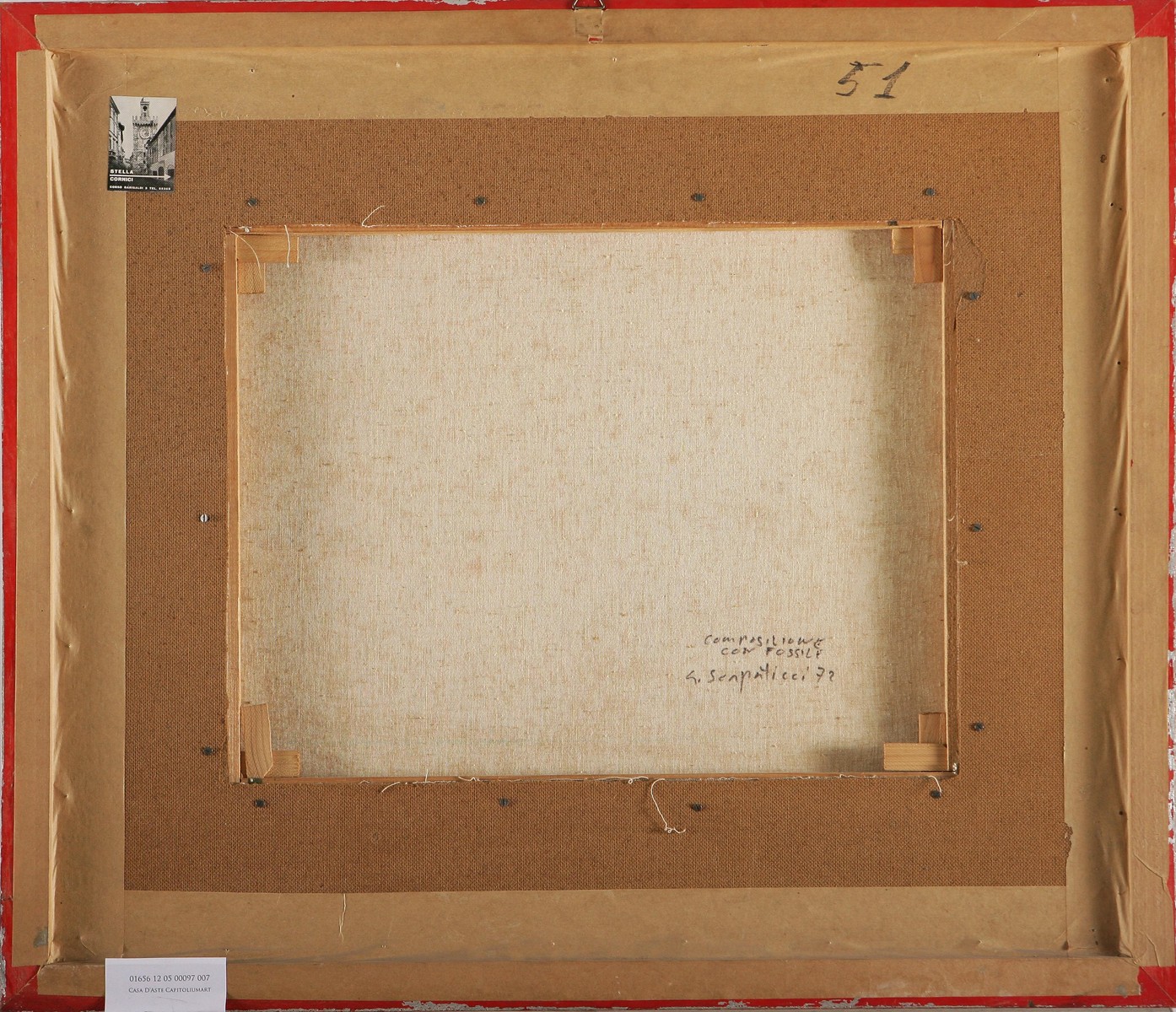 SCAPATICCI GIULIO (1933 - 2006) Composizione con fossile. 1972 Olio su tela, cm 50x40. Al retro firma e data.