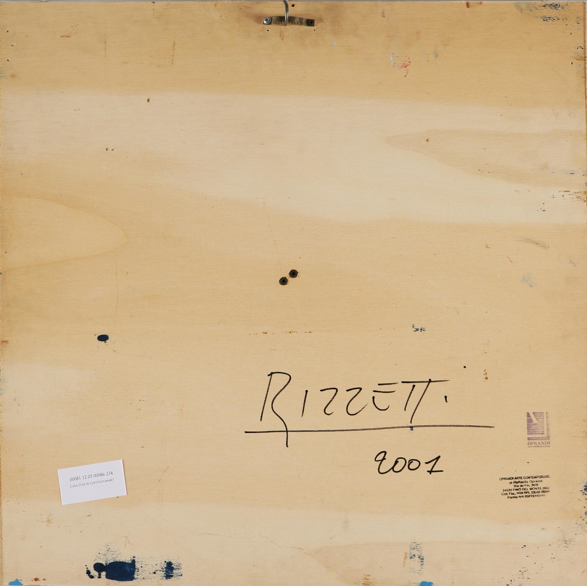 RIZZETTI CARLO (n. 1969) Senza titolo. 2001 Tecnica mista su tavola, Autentica ad opera della Galleria Oprandi Arte, Fino del Monte (BG). Al retro firma, data e timbro Oprandi Arte Contemporanea. Cornice presente.