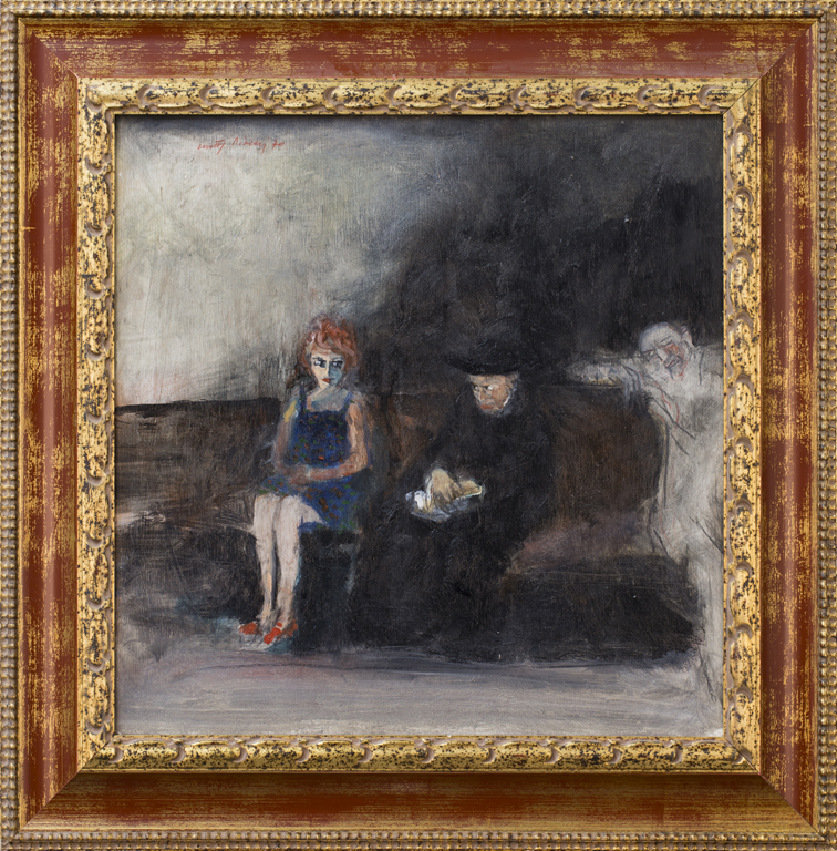 WALTER PIACESI (1929)3 personaggi in sala d'attesa, 1970Olio su tavolacm...