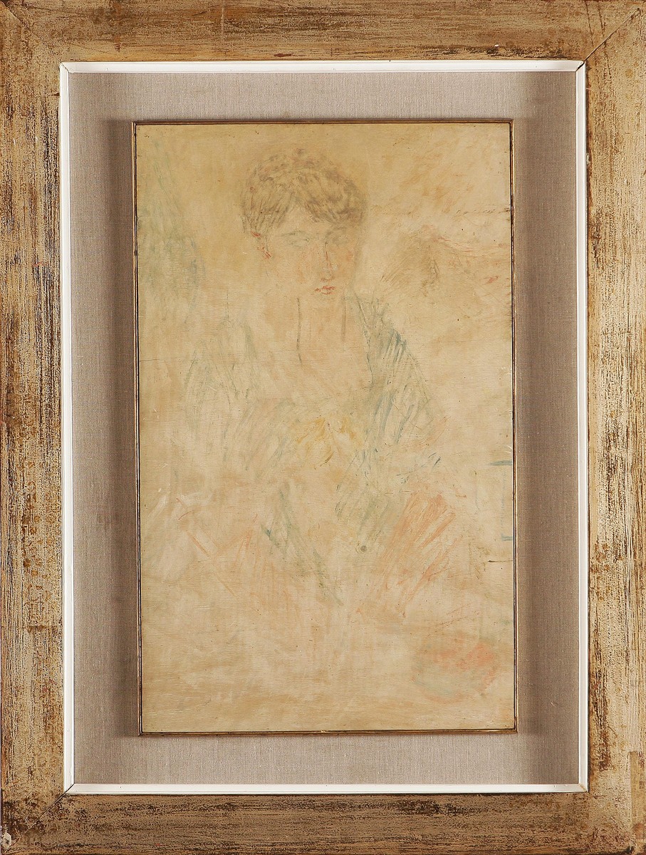 SEMEGHINI PIO (1878 - 1964) Figura femminile. Tecnica mista su tavola, cm 33x53,5. Al retro titolo e firma per autentica della moglie Gianna Semeghini datata 1973. Cornice presente.