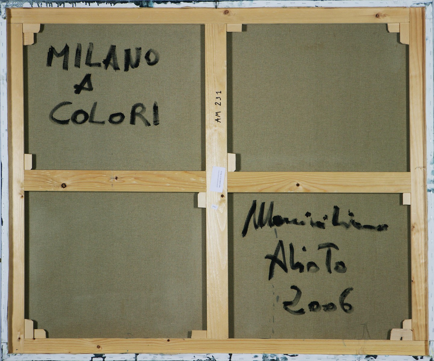 ALIOTO MASSIMILIANO (n. 1972) Milano a colori. 2006 Olio su tela, cm 120x100. Autentica dell'artista su fotografia. Firma e anno in basso a destra. Al retro titolo, firma e anno.