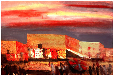 SALVATORE MAGAZZINI Pistoia 1955 Piazza dei tappeti a Marrakech Tempera su cartoncino 35 x 35. Firma in b. a d. Autentica dell’autore su foto. B.A.: 100