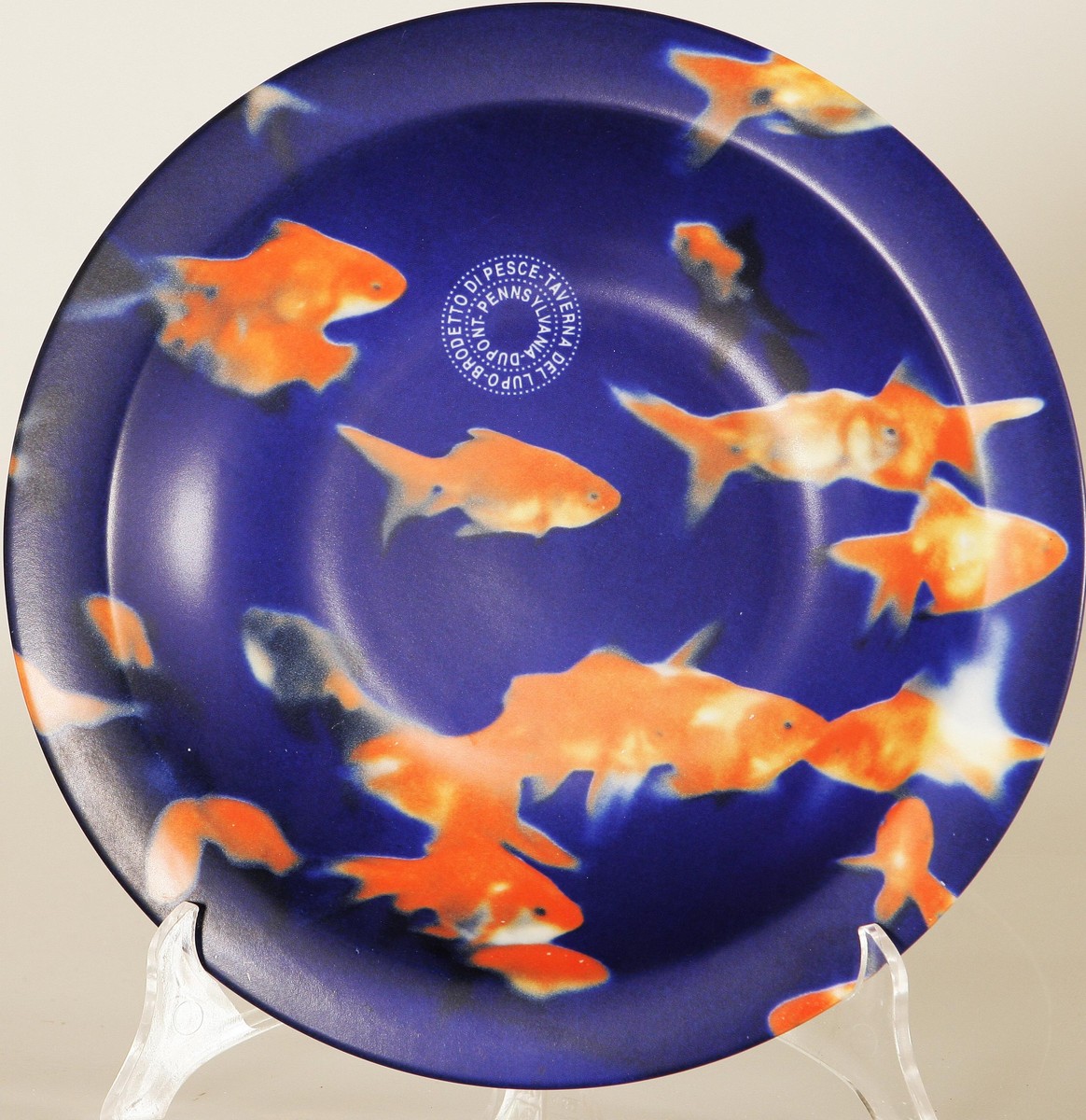CATTELAN MAURIZIO (n. 1960) Brodetto di pesce - taverna del lupo - Dupont - Pa. 1998 Multiplo su ceramica, cm 25,5. Stampato da Buonricordo America Inc. P.D.A. VIII/XXX Cornice presente.