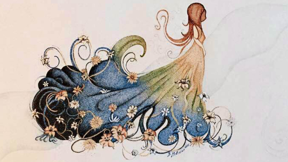 BARBARA MELCARNE Lady B puntinismo a china su cartoncino cm. 25x50, firma in...