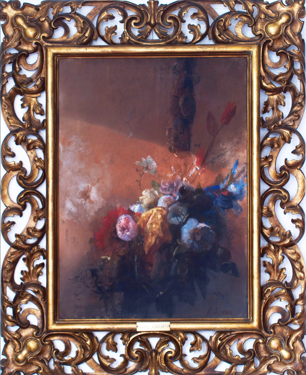 LUIGI SCORSATI Natura morta con fiori, fine ottocento olio su tela cm. 80x60 solo tela.