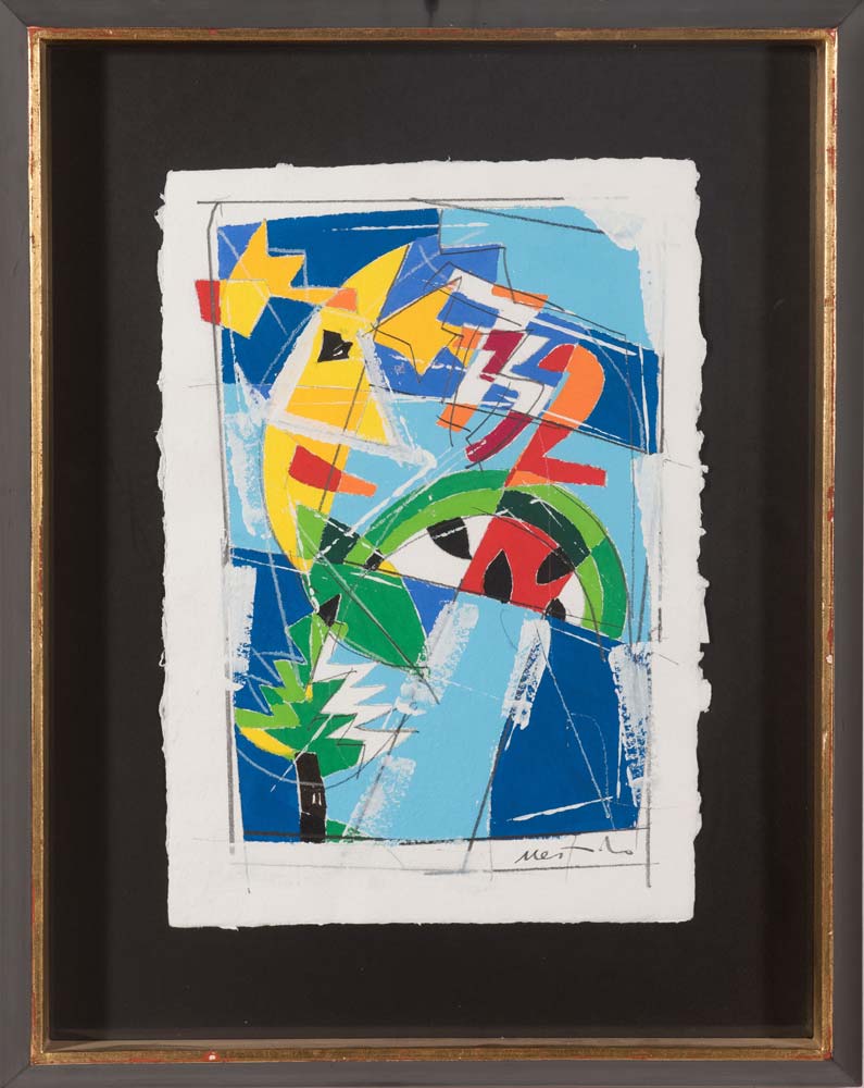 Ugo Nespolo (Biella 1941), “Senza Titolo”. Olio e acrilico su carta cotone, firmato in basso a destra Nespolo, H cm 50x36 Accompagnato da certificato di autenticità dell’artista su fotografia con timbro a secco