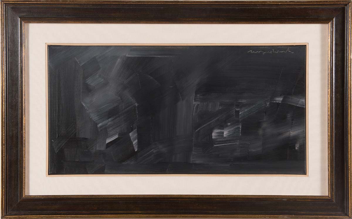Sergio Romiti (Bologna 1928 – 2000), “Senza Titolo”, Anni '90. Olio su tela, firmato in alto a destra Sergio Romiti, H cm 35x70 Opera accompagnata da autentica dell’autore su fotografia