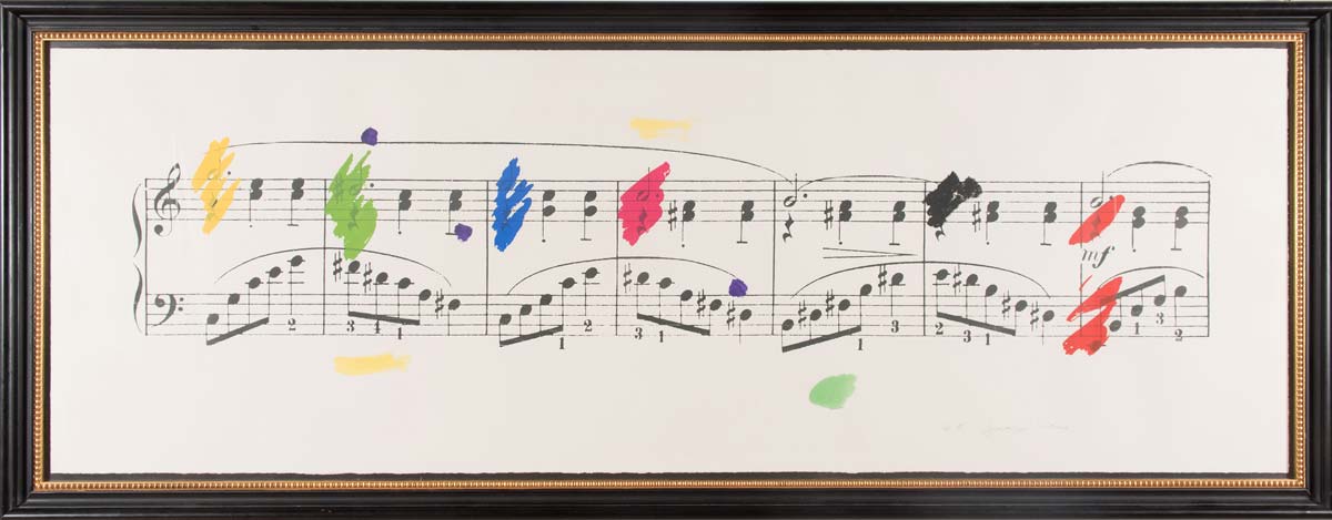 Giuseppe Chiari (Firenze 1926 – 2007), “Spartito”. Litografia a colori, firmata in basso a destra Giuseppe Chiari, esemplare H.C., H cm 60.5x176.5