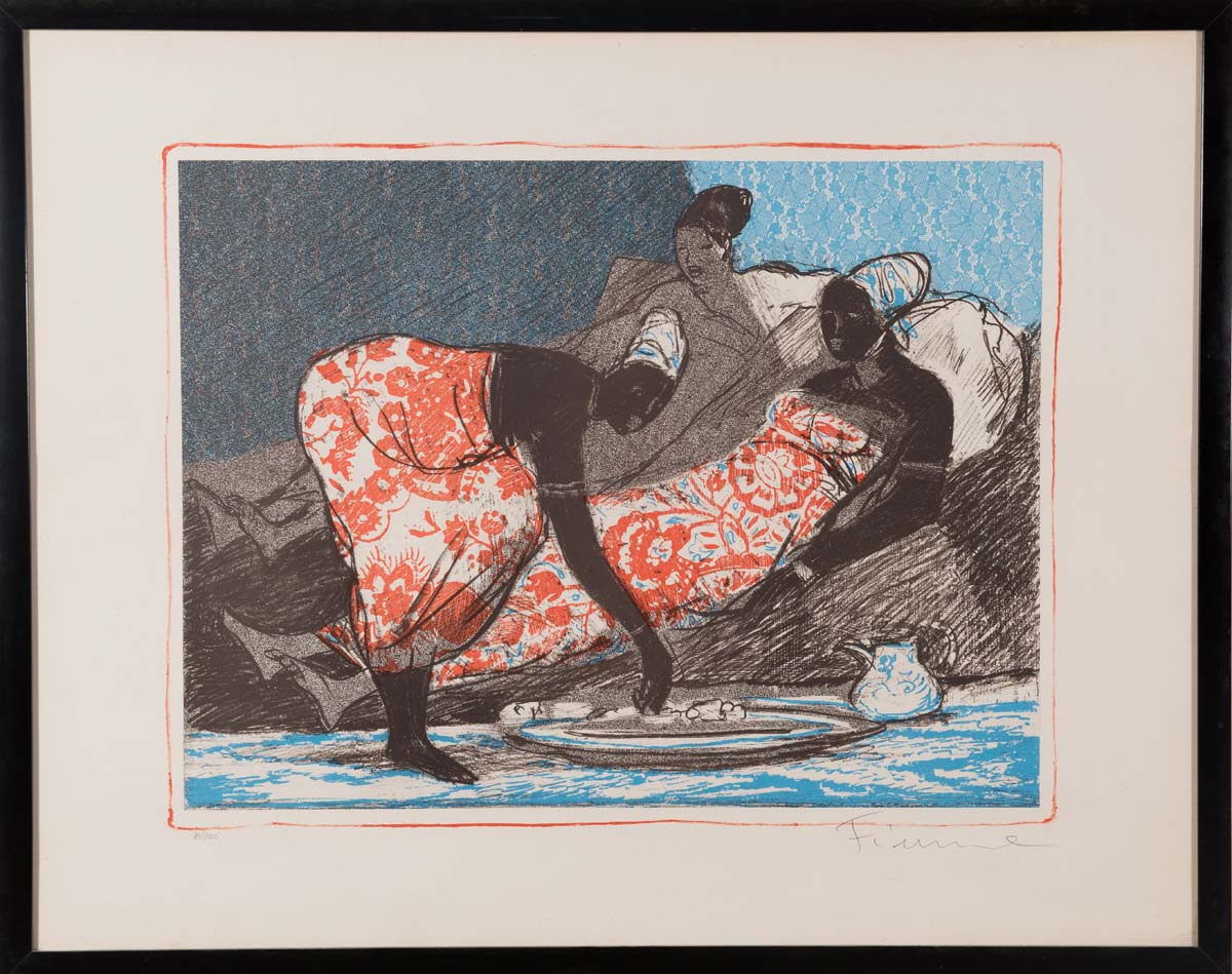 Salvatore Fiume (Comiso 1915 – Milano 1997), “Donne Somale”. Litografia a colori, firmata in basso a destra Fiume, tiratura in basso a sinistra 26/500, H mm 440x585