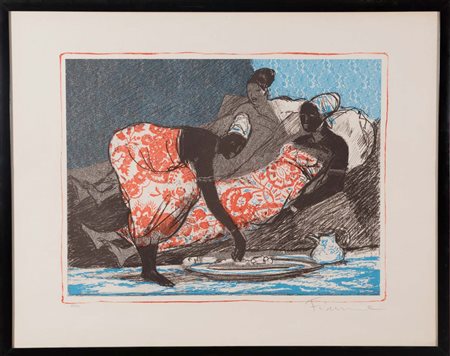 Salvatore Fiume (Comiso 1915 – Milano 1997), “Donne Somale”. Litografia a...
