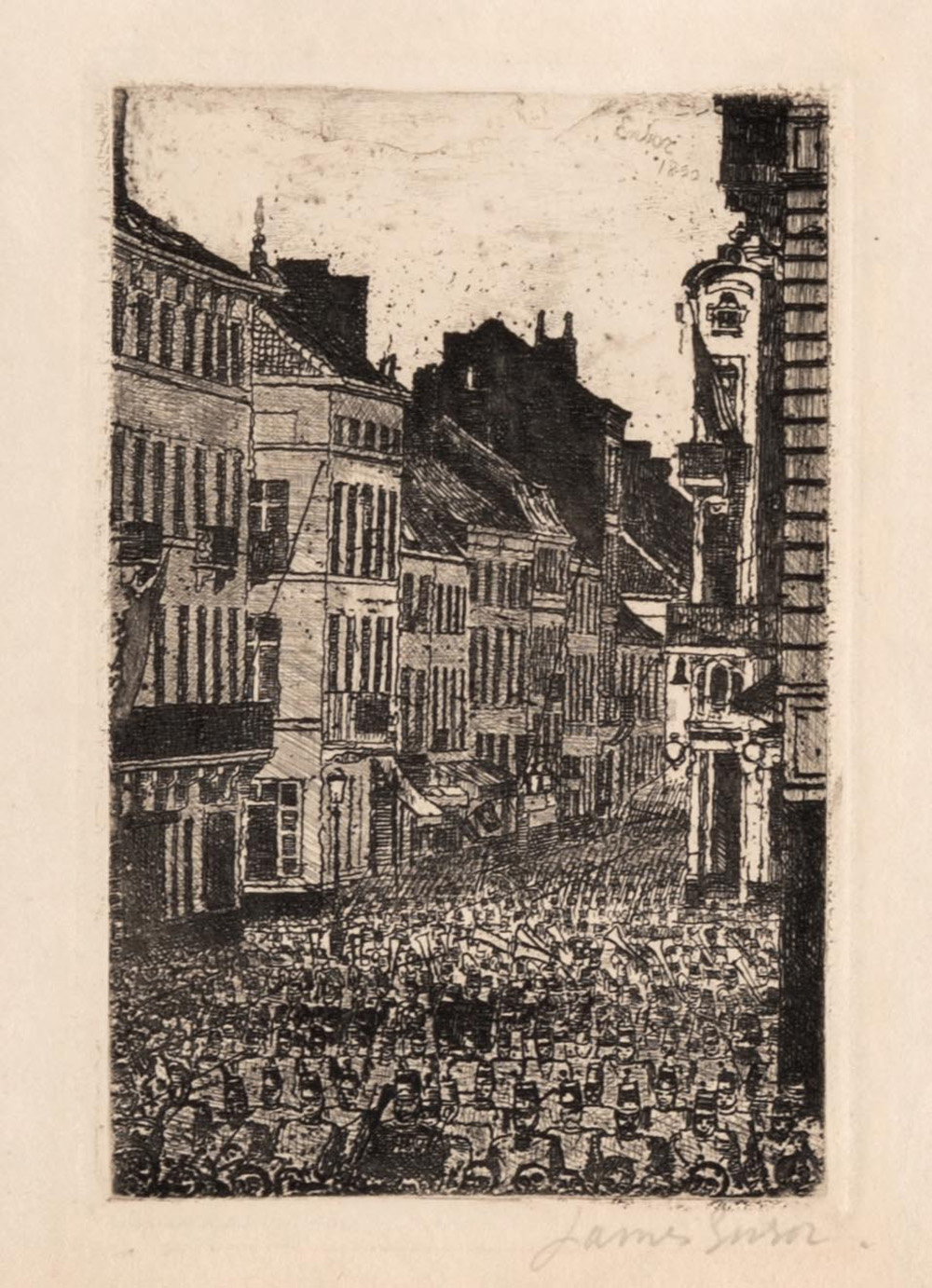 JAMES ENSOR (1860 - 1949) The music in the Rue de Flandre, Ostend 1890...