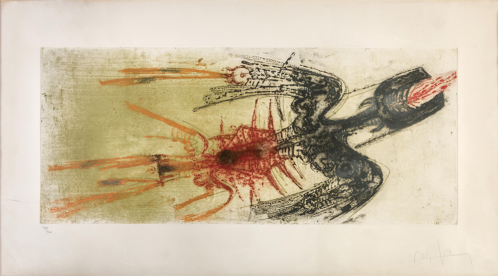 WILFREDO LAM (1902 - 1982) Senza titolo Acquatinta, es. 48/60 30,5 x 72,5 cm...