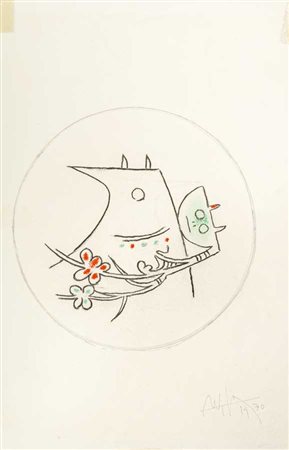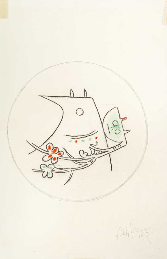 WILFREDO LAM (1902 - 1982) Bozzetto per servizio di piatti prodotti dalla...