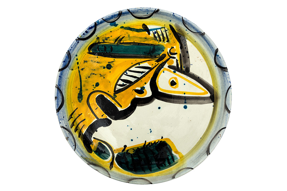 Piatto in terracotta maiolicata decorata a mano, monotipo, Manifattura Giuseppe Mazzotti 1903, Albisola