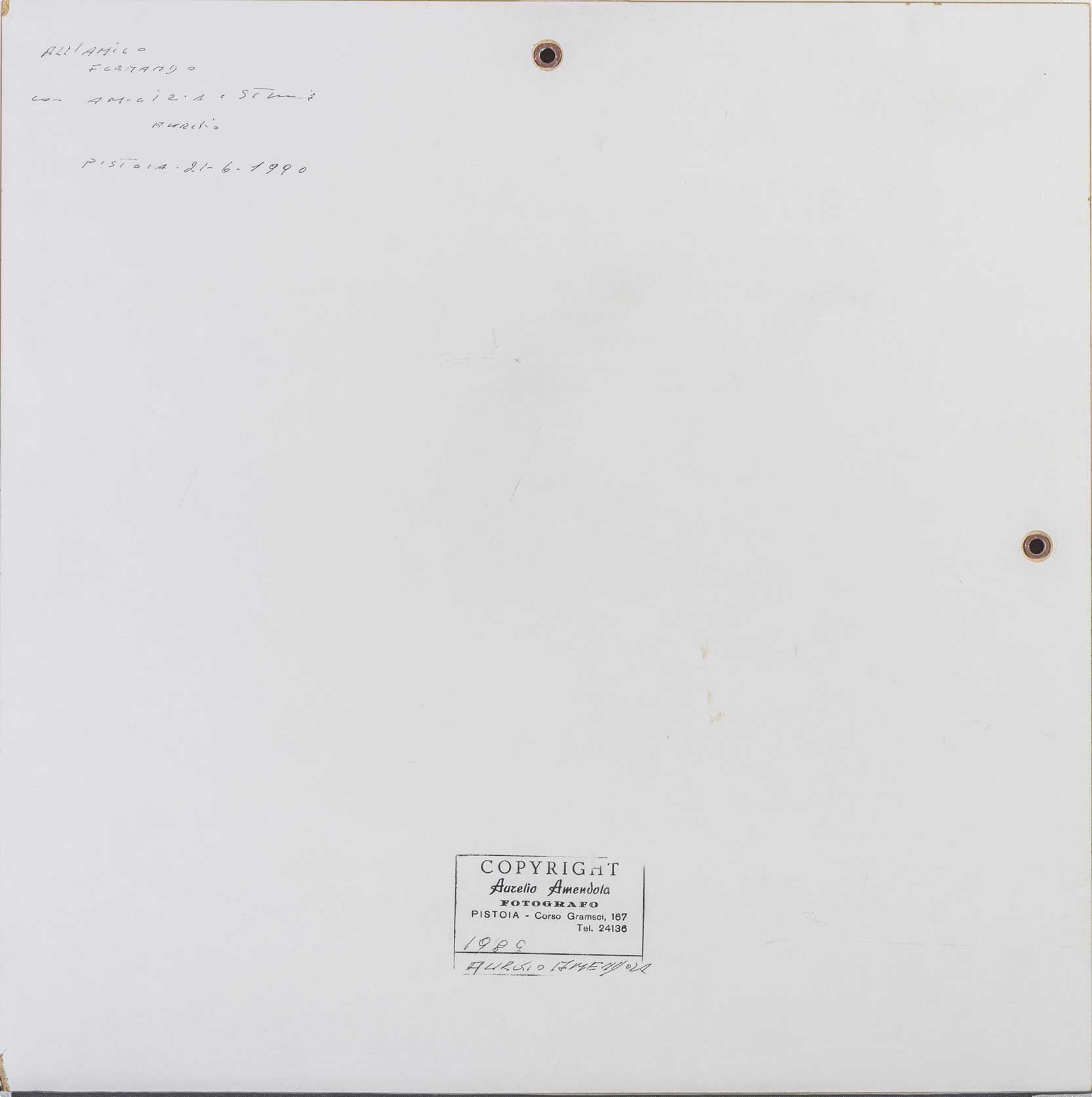 Timbro dell'artista, data, firma e dedica sul retro