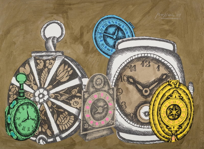 Concetto Pozzati (Vò di Padova 1935 Bologna 2017) Tempo sospeso, 2003 Tecnica mista e collage su cartoncino, cm. 56x76. Firma e data in alto a destra. Esposizione: "Concetto Pozzati - Tempo Sospeso", Muse d'Arte della città di Ravenna, Christina Maretti Editore, 2 Luglio - 19 Settembre 2010, pubblicato sul catalogo della mostra a pag. 62. Autentica dell'Artista su foto con n° di riferimento VA08347M.