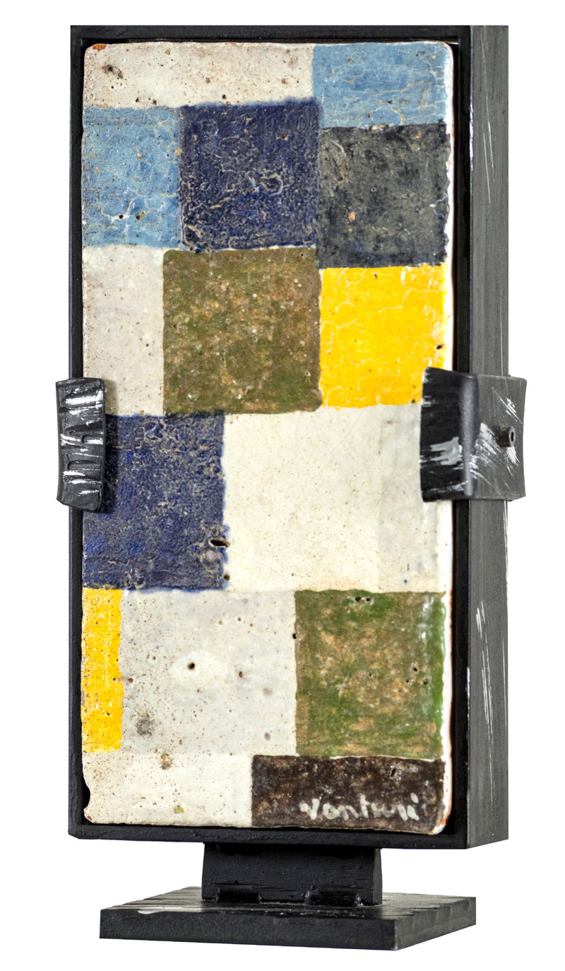 Venturino Venturi (Loro Ciuffenna (Ar) 1918 2002) Senza titolo, Terracotta invetriata, cm. 25,5x12,5x5, su base di ferro. Firmato in basso a destra: Sul verso: timbro "Archivio Venturino Venturi con Archivio n° 537". Bibliografia: Lucia Fiaschi "Venturino Venturi, Catalogo Generale Volume I",Carlo Cambi editore, pag. 108, n° 31 Autentica della Dott.ssa Lucia Fiaschi, su foto, con Archivio n° 527.