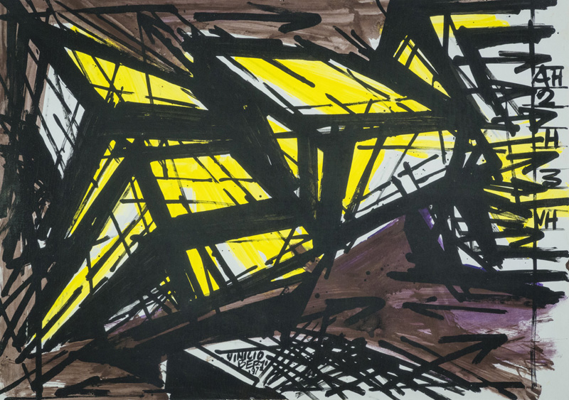 Vinicio Berti (Firenze 1921 1991) AH2 - H3 - VH, 1973 Tempera su cartoncino applicato su tavola, cm. 48,5x69. Firma e data in basso al centro. Parere verbale positivo di Aurelio Stefanini.