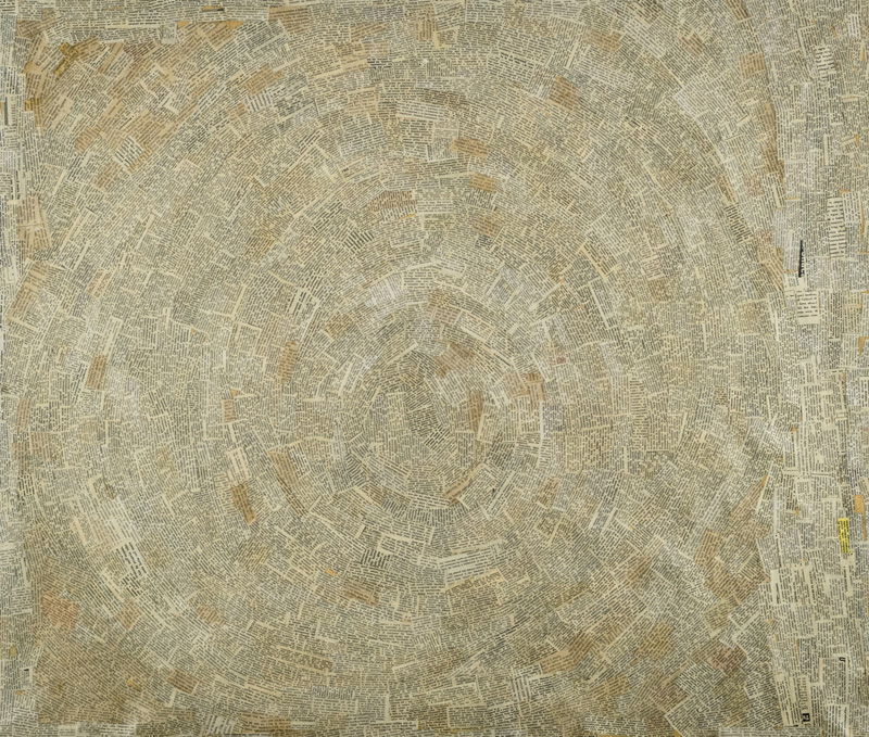 Arturo Carmassi (Lucca 1925 Empoli, Fi 2015) Senza titolo, Collage di giornale su tela, cm. 85x99,5. Sul verso: firma. Autentica dell'Artista su foto