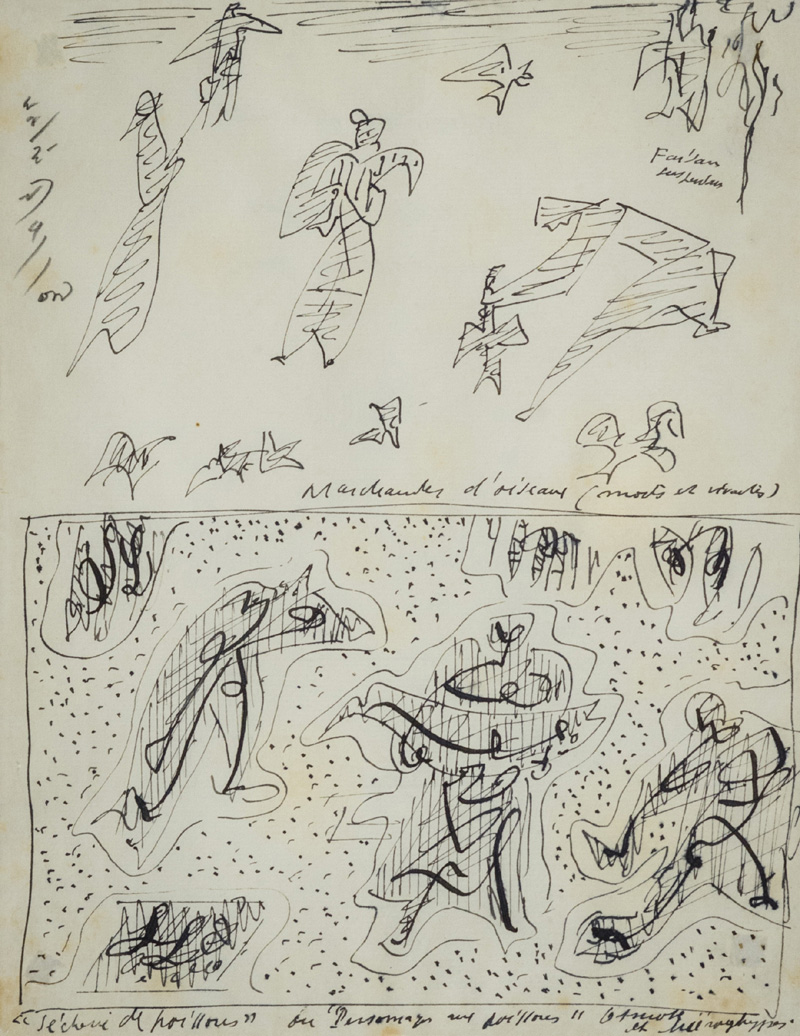 Andrè Masson (Balagny 1896 Parigi 1987) Senza titolo 1959 China su carta, cm. 26x20. Sul verso: Etichetta "Galleria d'Arte Palazzo Vecchio" Firenze, con descrizione. Autentica dell'Artista su foto.