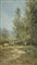 Ferruccio Rontini (Firenze 1893 Livorno 1964) Paesaggio con figure 1946 Olio su tavola, cm. 41,5x23,5. Firma e data in basso a a destra. Sul verso: etichetta dell'Artista con firma e data. Autentica di Alessandra Rontini, su foto.