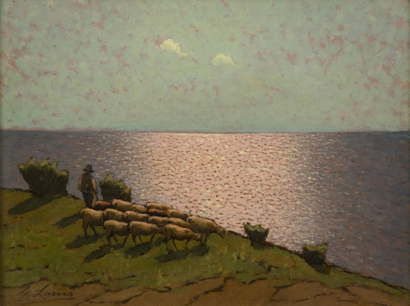 Giovanni Lomi (Livorno 1889 Livorno 1969) Meriggio ad Antignano 1960 c.a. Olio su faesite, cm. 30x40. Firmato in basso a sinistra. Sul verso: firma e titolo. Autentica di Massimo Lomi su foto con Archivio n° 273. Certificato di Provenienza "Saletta d'Arte Viviani", Pisa, su foto.