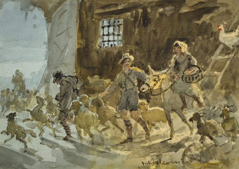 Giulio Falzoni (Marmirolo (Mn) 1900 Milano 1978) Partenza all'alba Acquerello...