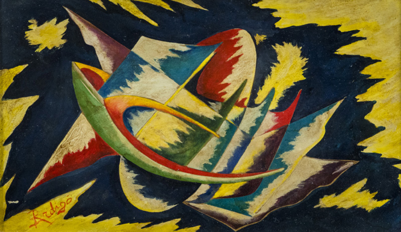 Pietro Ardigò Volo furìturista - Memorie Olio su carta, cm. 12,3x21,1. Firmato in basso a sinistra. Certificato "Galleria d'Arte La Civetta", Lido di Roma, Roma.
