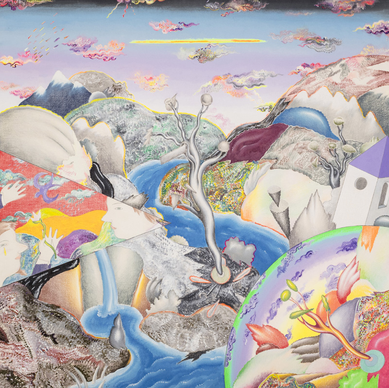 Luca Alinari (Firenze 1943) Paesaggio Olio e tecnica mista su tela applicata su tavola, cm. 88,5x88,5. Firmato in alto a sinistra.