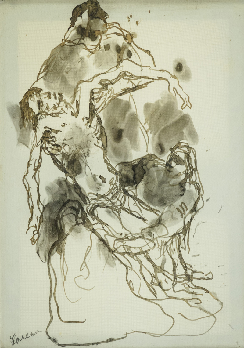 Felice Carena (Cumiana (To) 1879 Venezia 1966) Deposizione China acquerellata su carta intelata, cm. 30,5x22. Firmato in basso a sinistra.