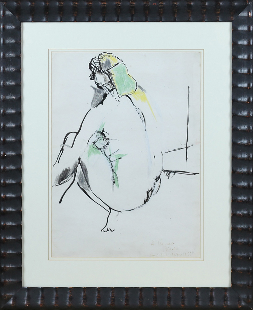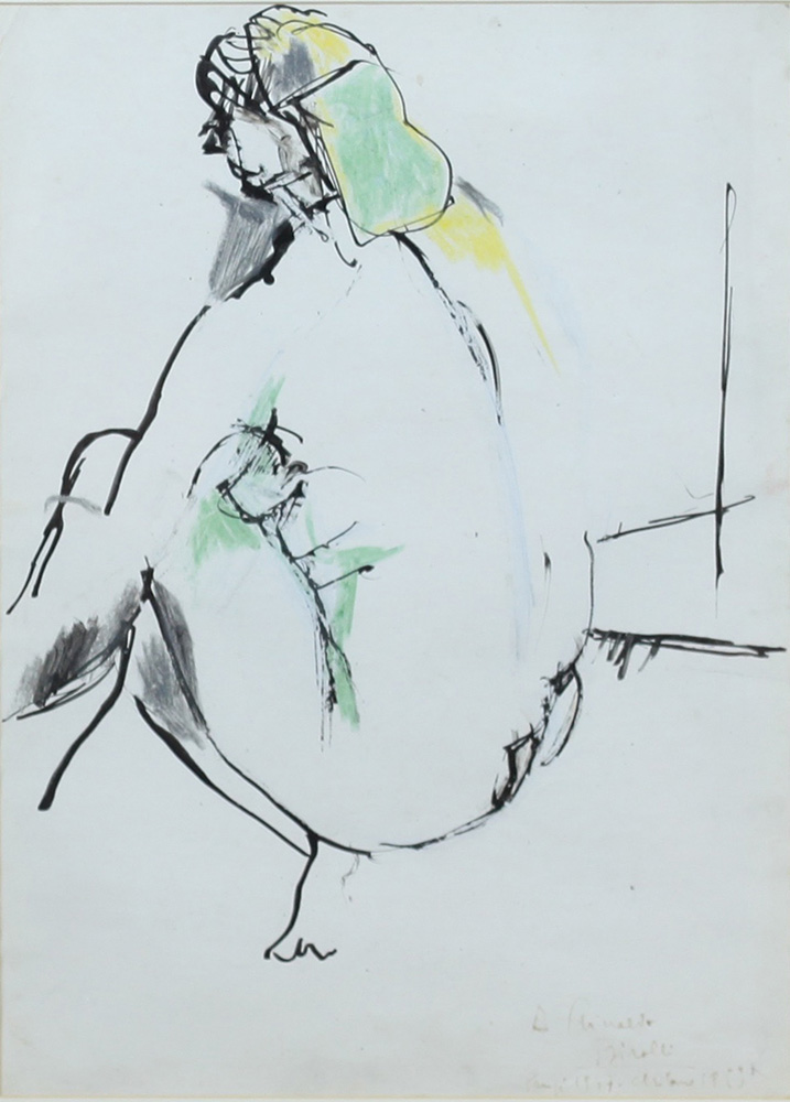 Renato Birolli ( Verona 1905 - Milano 1959) Nudo 1949 Dim.37,5x27,8 Disegno a china e matite colorate su carta Opera pubblicata nel catalogo “Opere su carta” a cura di Dino Carlesi Viareggio 2004 Dedica, firma e data in basso a dx
