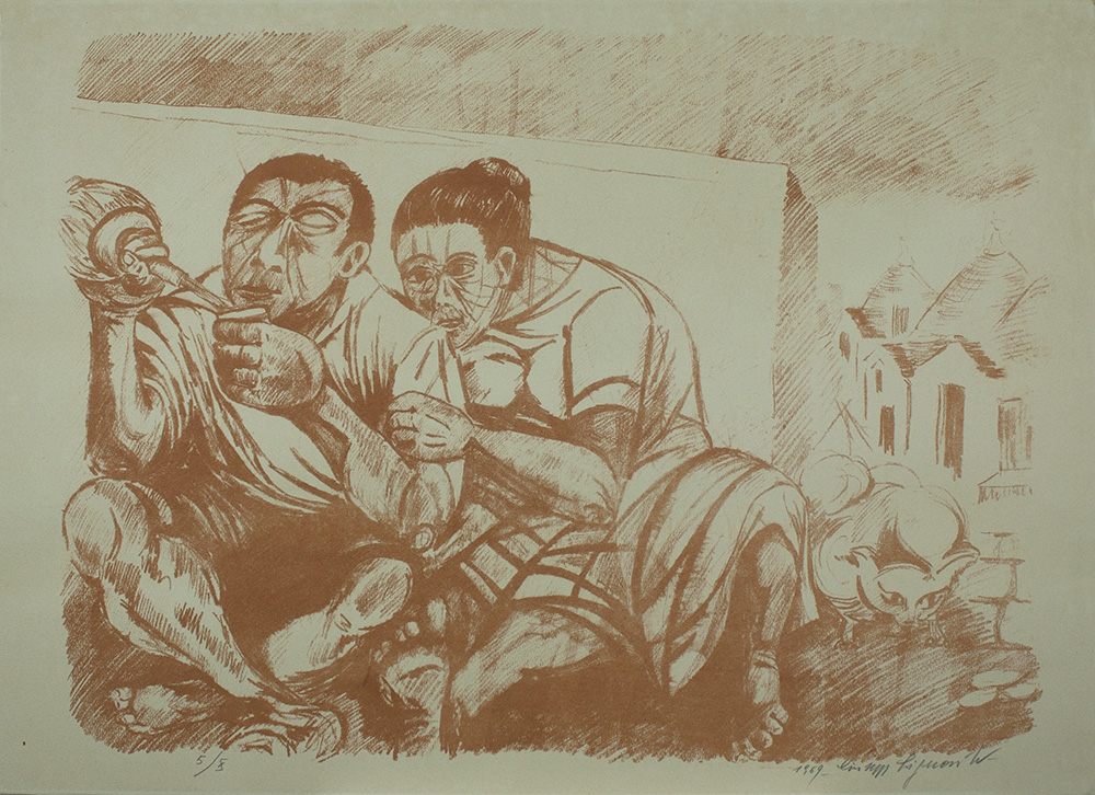GIUSEPPE SIGNORILE Bari 1927-2016 litografia su carta es. n. 5 / 10 cm 50X70 firmata e datata 1969 in basso a dx; al retro cartone con autentica di pugno dell' Artista e cartiglio biografico