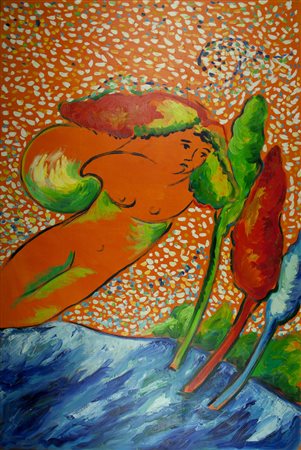 MIMMO GERMANÀ Catania 1944 - Busto Arsizio 1992 olio su tela anno 1990 cm 150x100 firmato e datato al retro Archivio su foto dell' Acquario n. 92 timbro a secco dell' Archivio Generale delle Opere di Mimmo Germanà timbro e firma della Galleria Cesare Manzo - Pescara