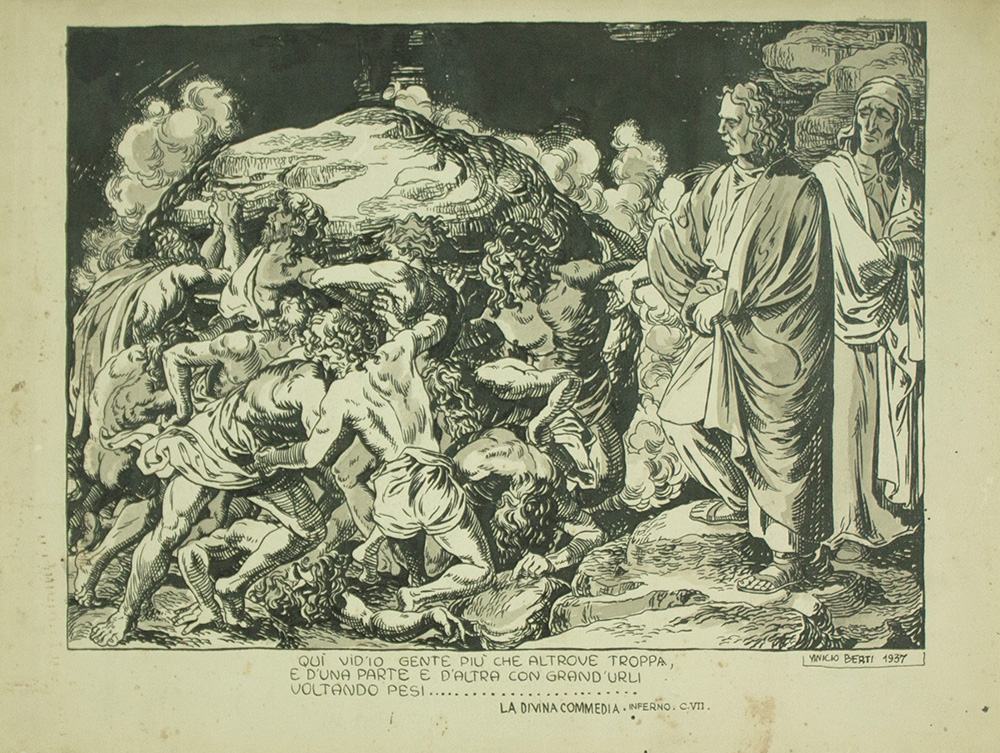 VINICIO BERTI Firenze, 1921 – 1991 " La Divina Commedia - Inferno Canto VII " china su carta anno 1937 26,5x35 cm firmato e datato in bdx