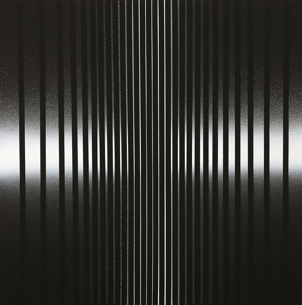 ENNIO FINZI Venezia 1931 " Luce vibrazione " acrilico su tela anni 1971/2013 cm 50x50 firmato, datato e titolato al retro Autentica dell' Autore su fotografia