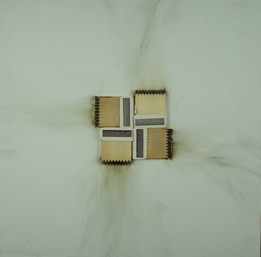 BERNARD AUBERTIN Fontenay-aux-Roses 1934 combustione di fiammiferi su tela cm 40x40 firmato al retro