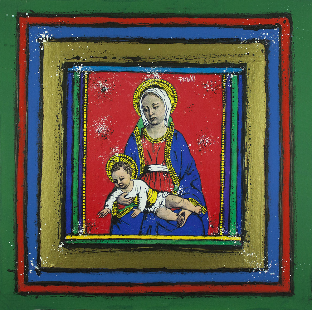 GENNARO PICINNI Bari 1933 tecnica mista e tempera cm 50x50 firmato al fronte...