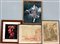 Lotto di due disegni a matita raffiguranti scorci di paesi, in cornici a cui si uniscono due cornici contenenti stampe (difetti)