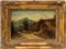 Firma indecifrata sec XIX "Paesaggio montano con viandanti" olio su cartoncino (cm 28x42) firmato in basso a sinistra, in cornice antica francese (difetti e mancanze)