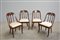 Gruppo di quattro sedie a "gondola" con schienale a giorno decorato a listelle tornite. Gambe a sciabola. Secolo XIX