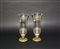 Coppia di candelieri con base in bronzo e campane in vetro, decorate a dorature