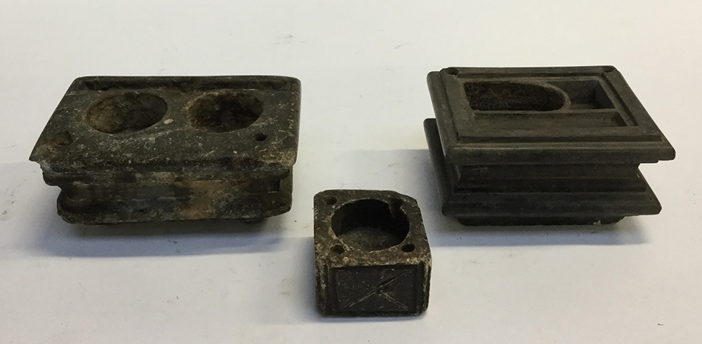 Lotto di tre antichi calamai in marmo (difetti e mancanze)